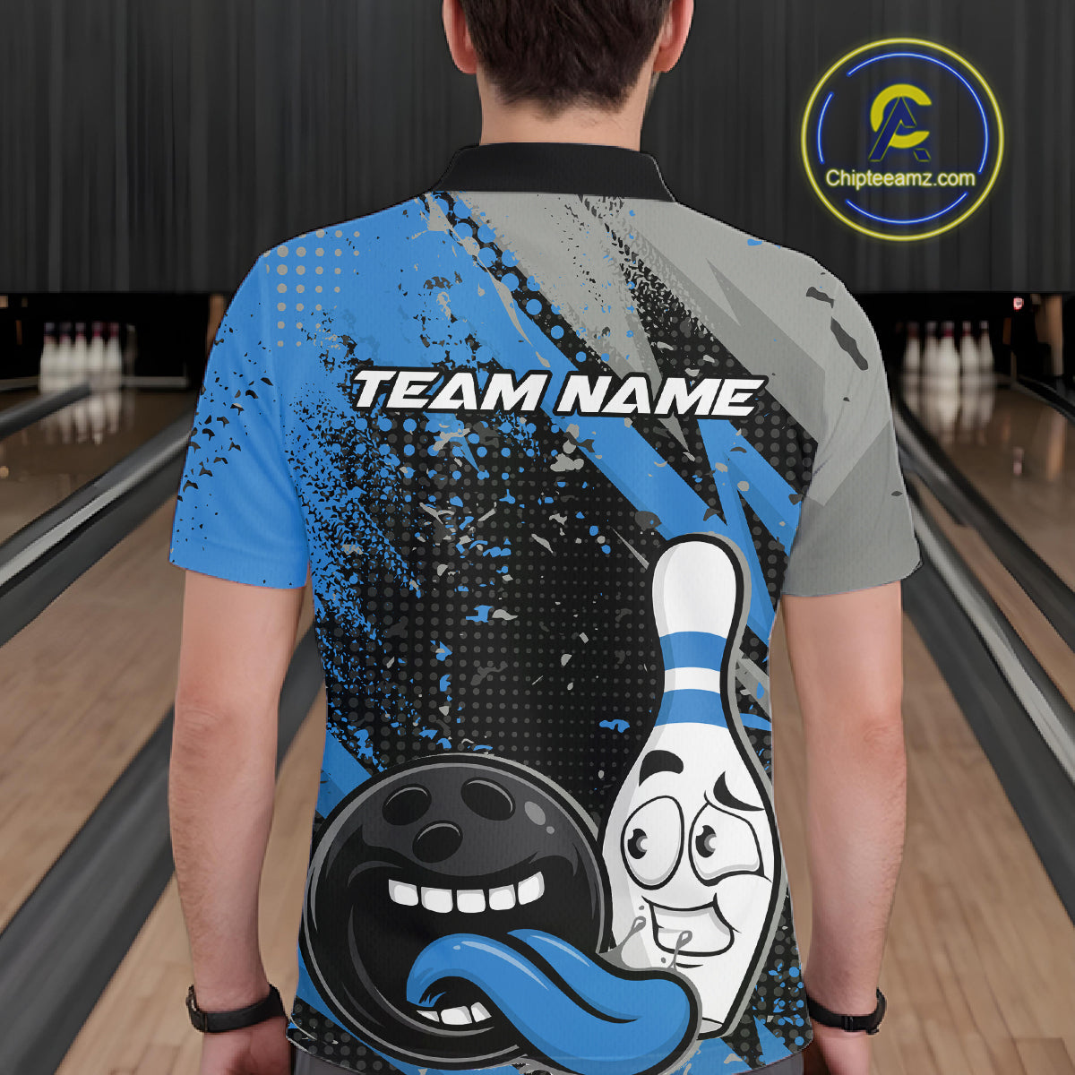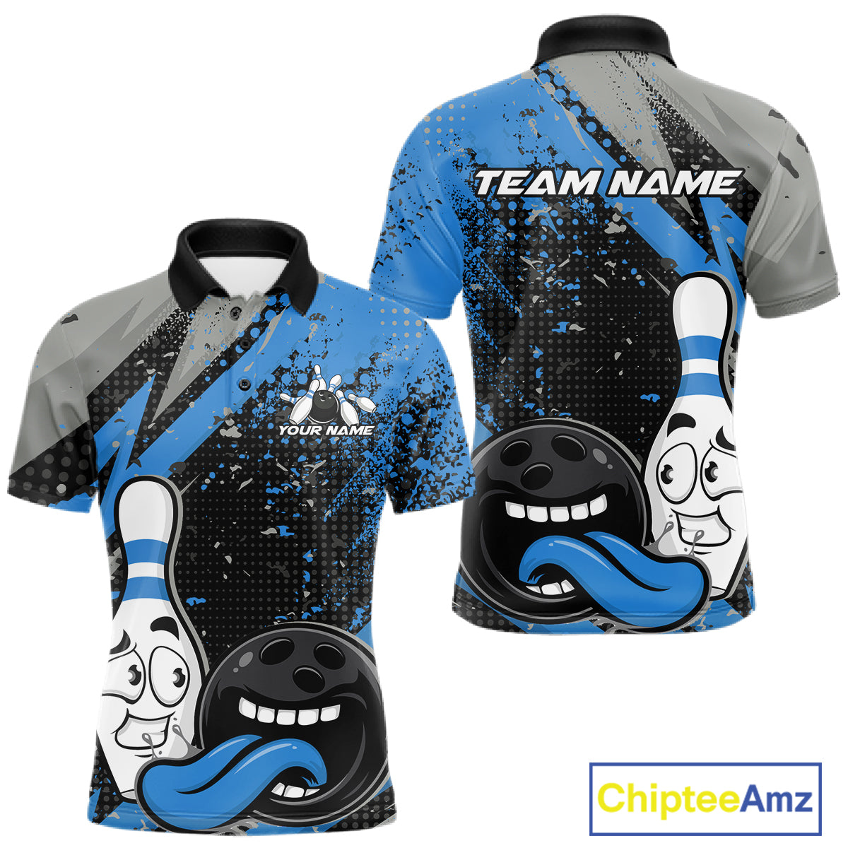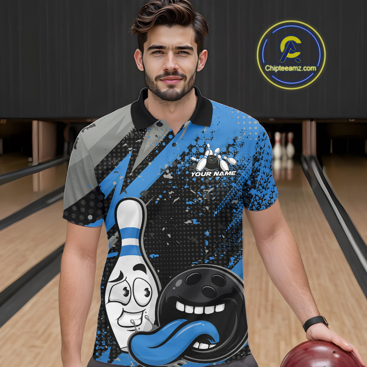 Custom Funny Bowling Polo Shirt For Men, Blue Bowling Ball And Pin Bowling Jersey IPHW10260