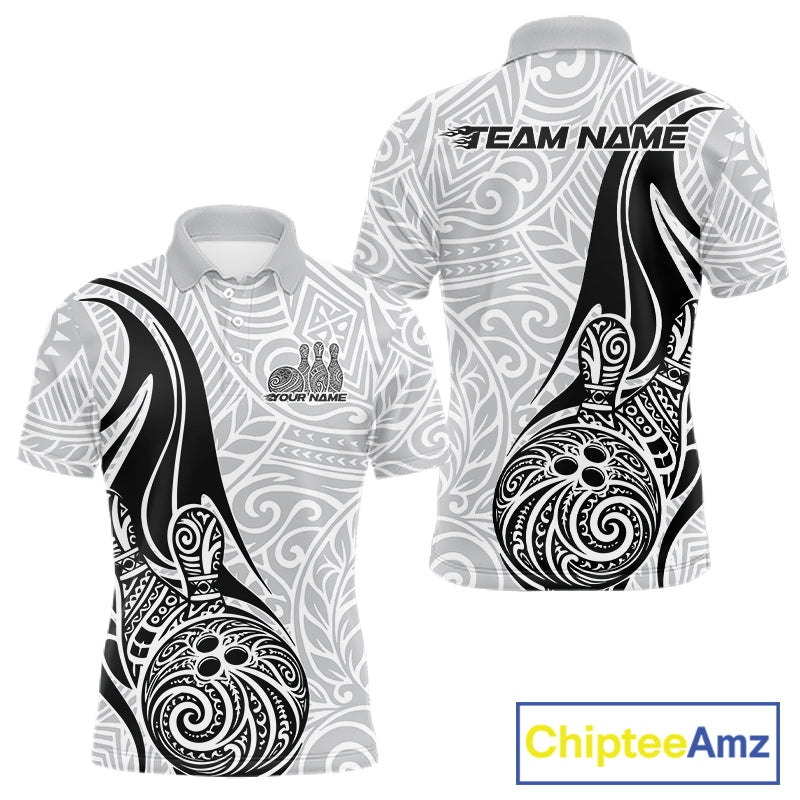 Custom Polynesian Tribal Bowling Men Polo Shirt, Maori Style Bowling Shirt IPHW10336
