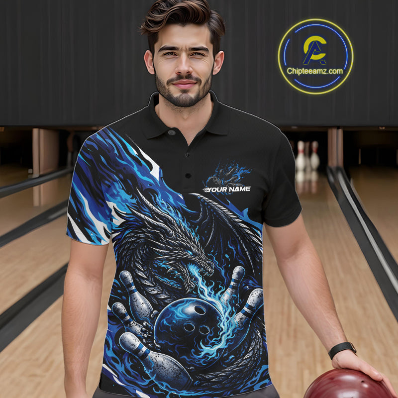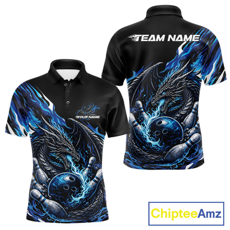 Custom Blue Flame Dragon Bowling Men Polo Team Shirts, Bowling Tournament Shirt IPHW10359