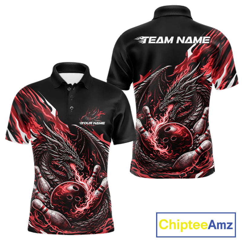 Custom Red Flame Dragon Bowling Men Polo Team Shirts, Bowling Tournament Shirt IPHW10360