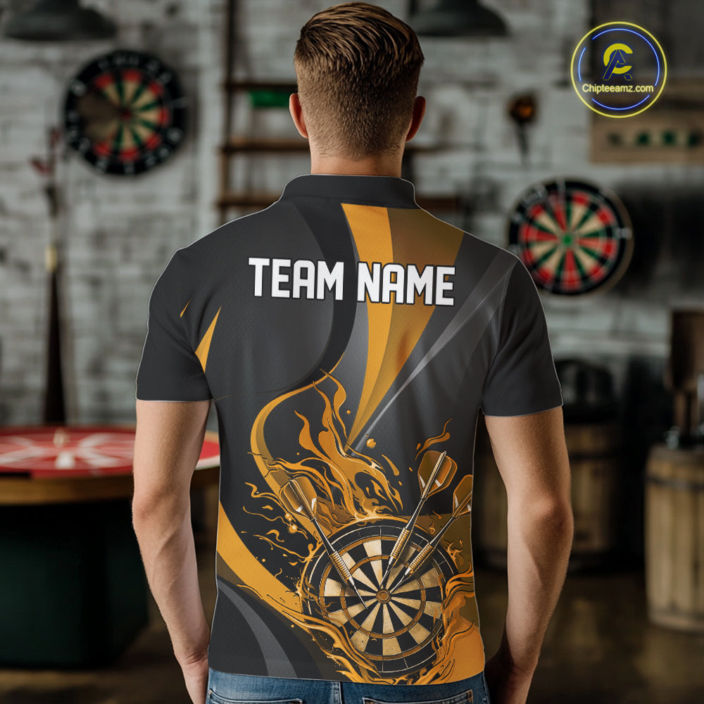 Custom Black And Yellow Flame Dartboard Darts Team Men Polo Shirts, Darts Jerseys IPHW10381