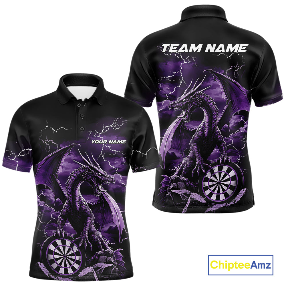 Custom Purple Lightning Dragon Darts Men Polo Shirts, Dragon Darts Team Jersey IPHW10383
