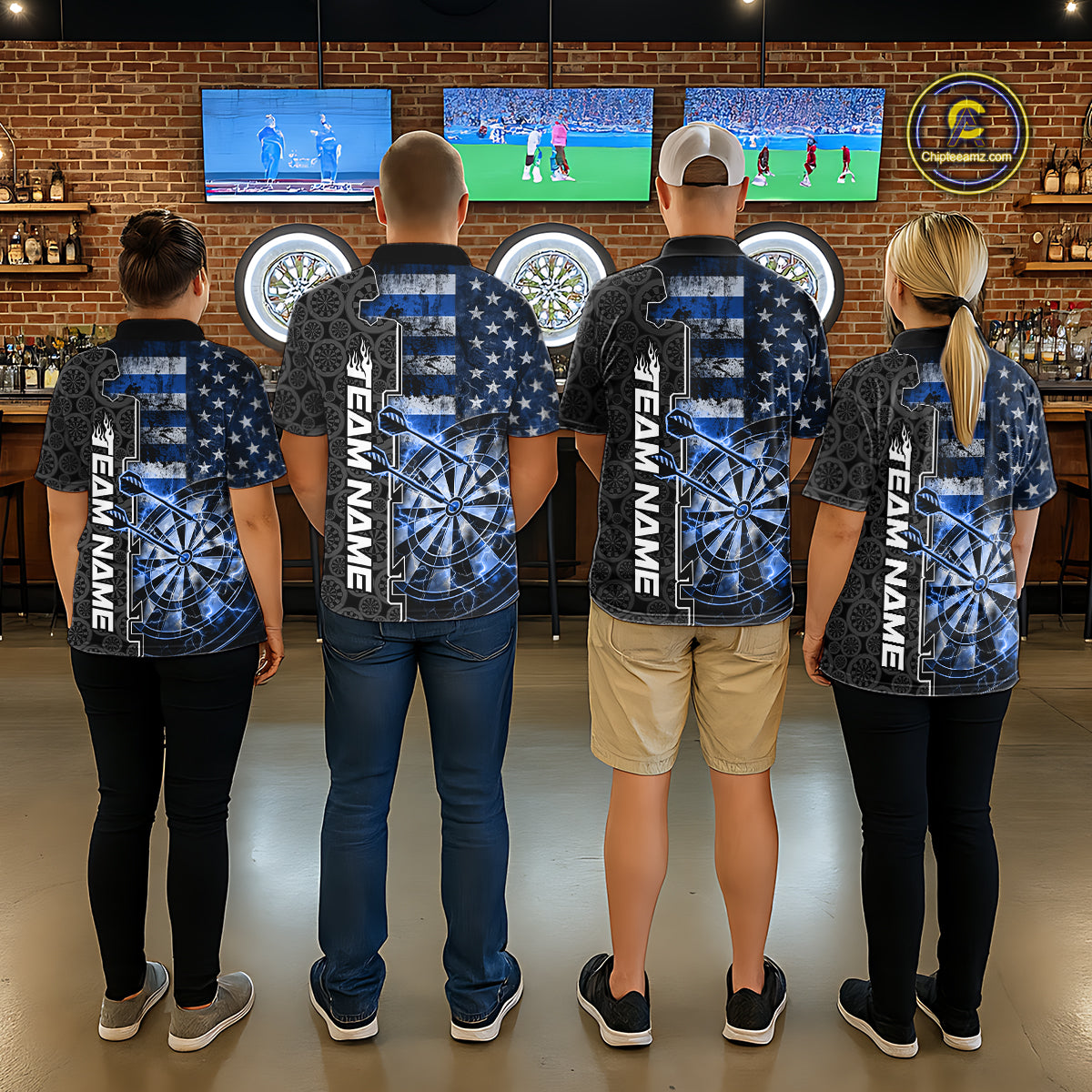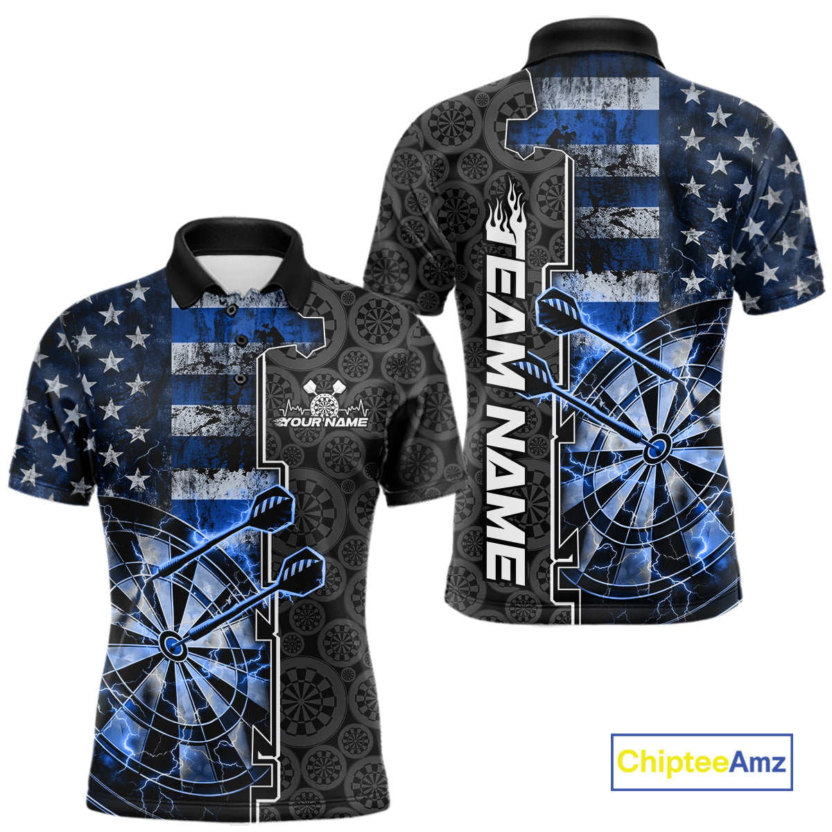 Custom Blue Lightning US Flag Dartboard Patriotic Dart Team Men Polo Shirt Dart Jerseys IPHW10388