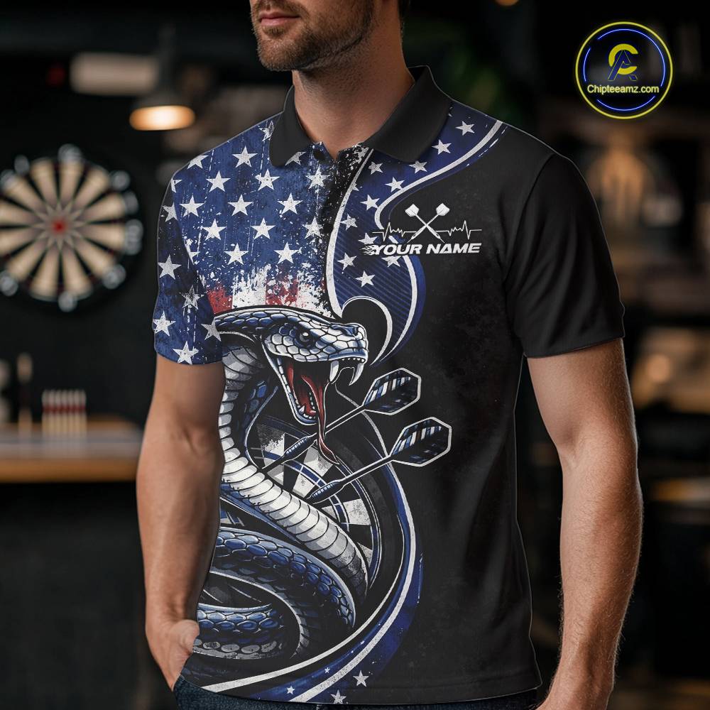 Custom Grunge US Flag Patriotic Cobra Snake Dart Men Polo Shirt, Dart Jerseys IPHW10392