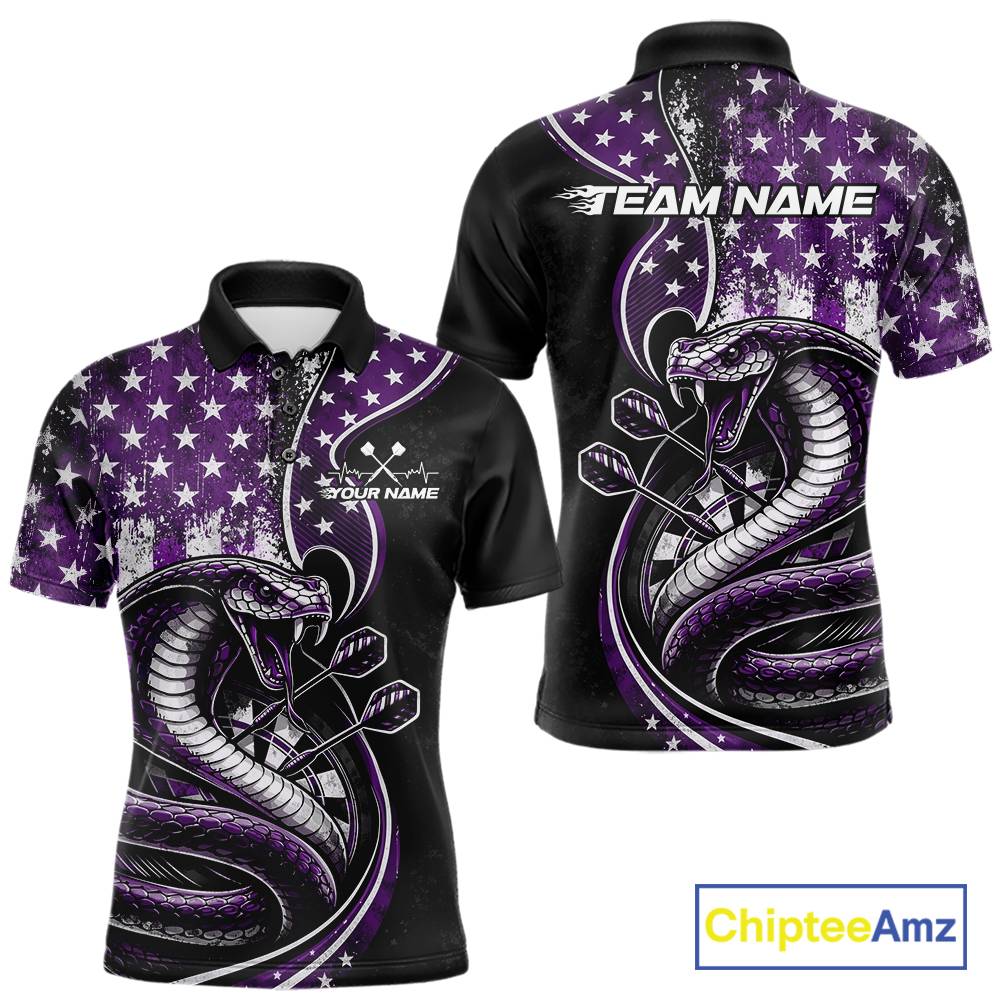 Custom Grunge Purple US Flag Patriotic Cobra Snake Dart Men Polo Shirt, Dart Jerseys IPHW10394
