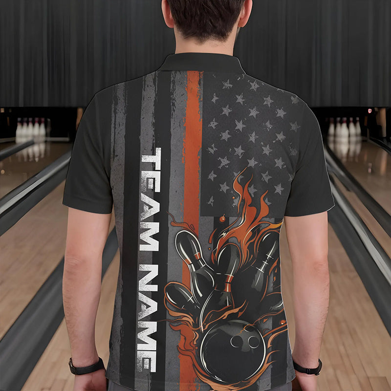 Brown Line American Flag Custom Patriotic Flame Bowling Polo Shirts For Men, US Bowling Shirt IPHW8638