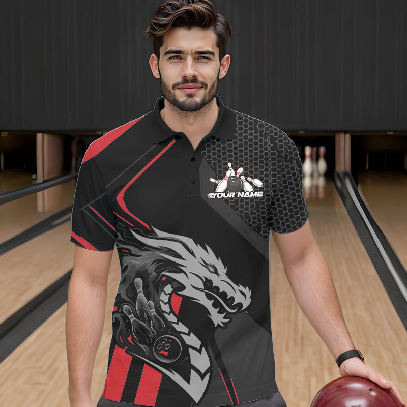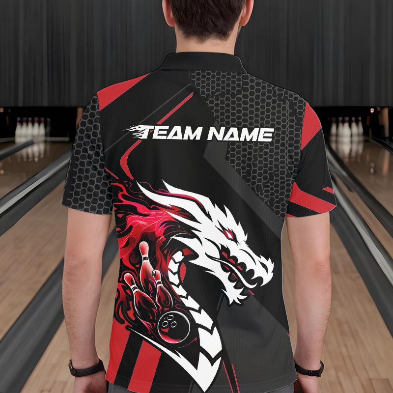 Custom Black And Red Dragon Bowling Jerseys, Bowling Team Men Polo Shirts Bowlers Outfit IPHW8701