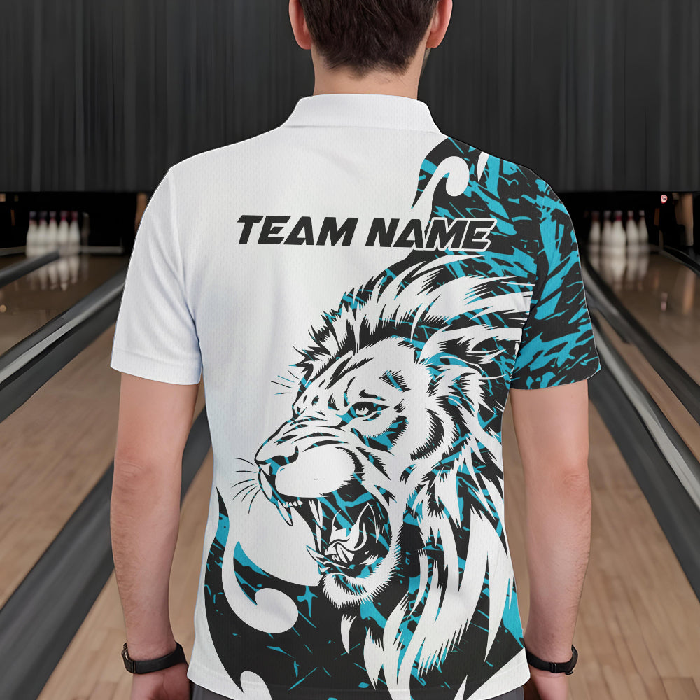Custom Blue Camo Lion Bowling Team Polo Shirts For Men, Lion Bowling League Shirt IPHW8856