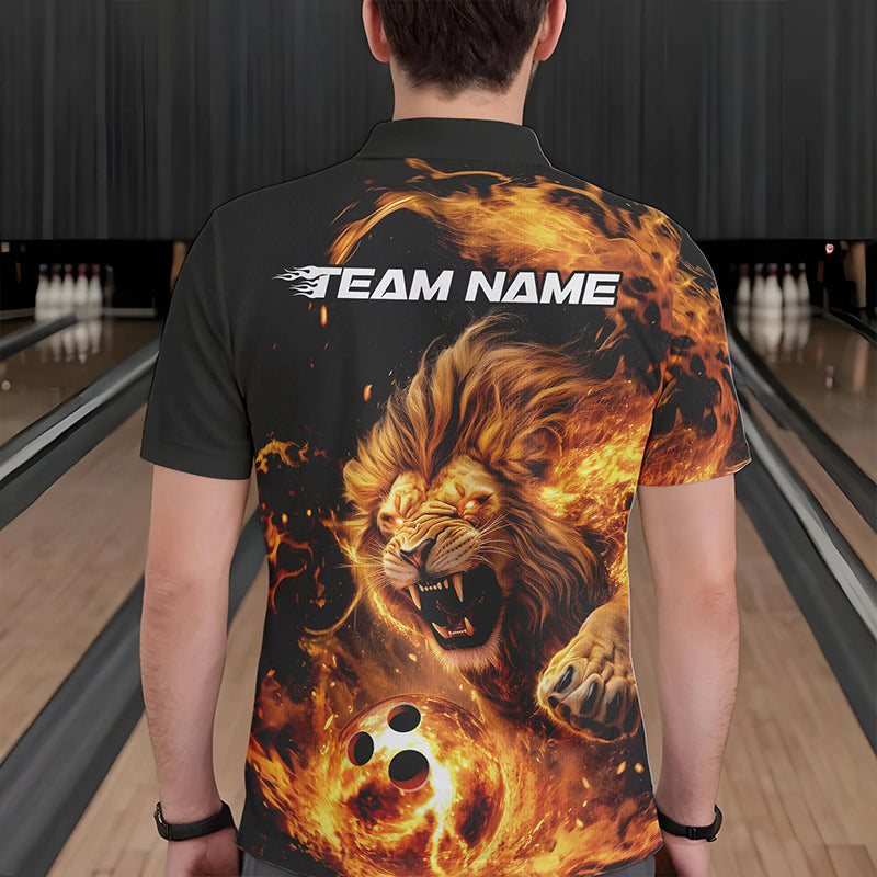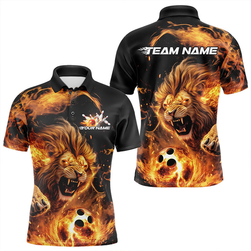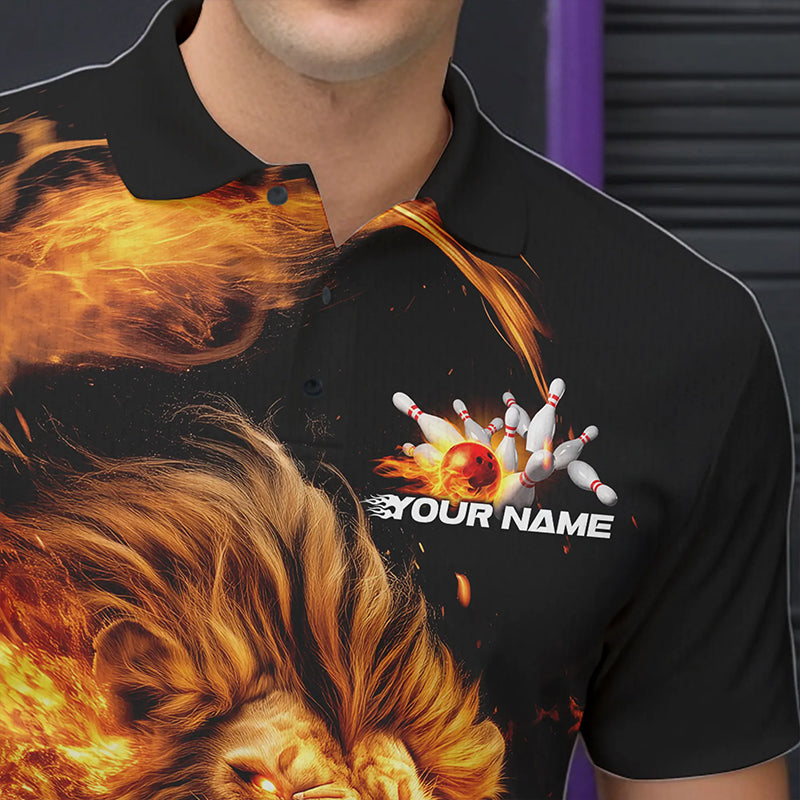Custom Fire Flame Lion Bowling Team Men Polo Shirts, Lion Bowling League Shirt IPHW8976