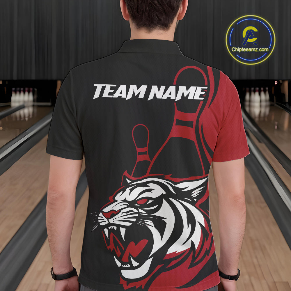 Custom Black And Red Tiger Bowling Jerseys, Tiger Bowling Team Men Polo Shirts IPHW9014