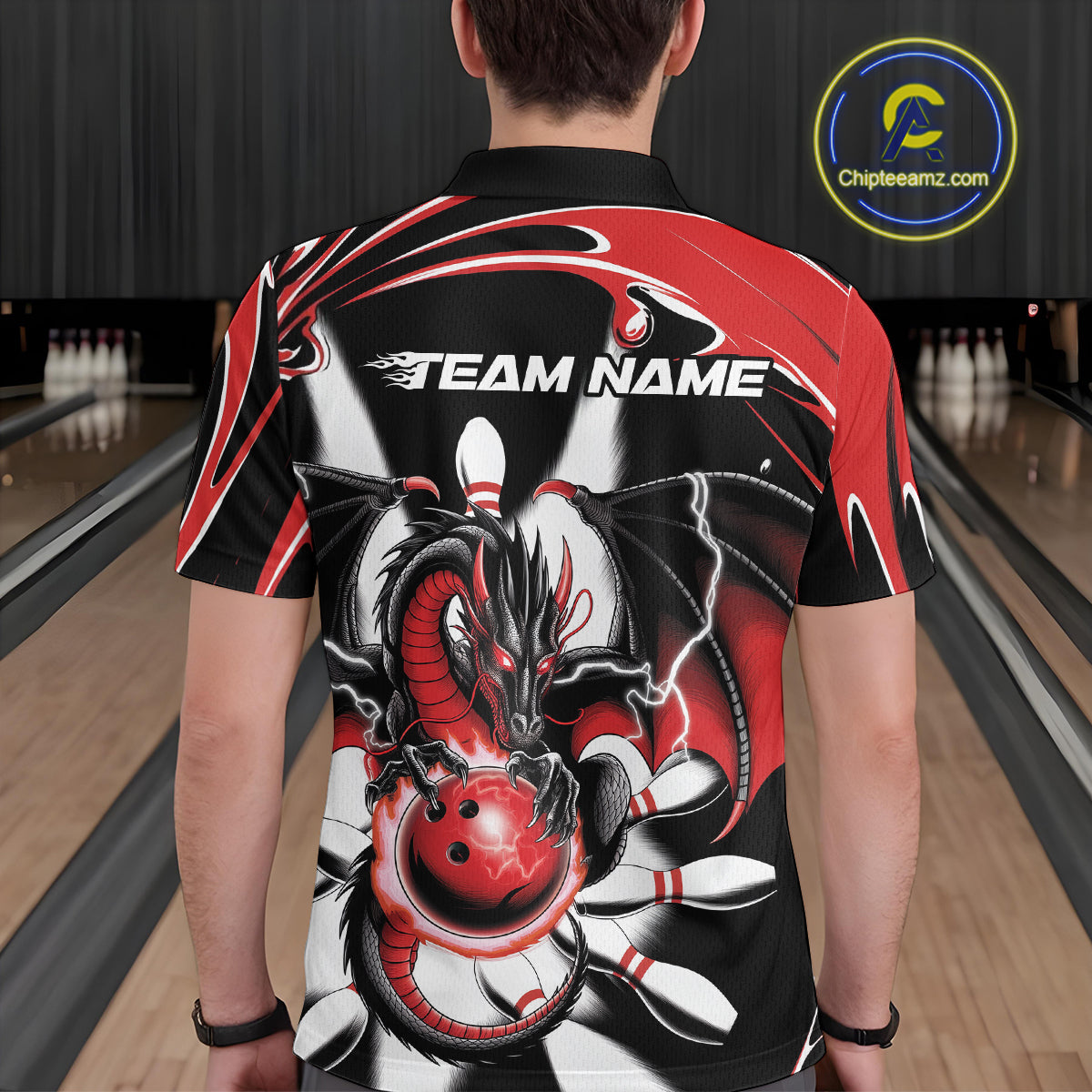 Custom Black And Red Dragon Bowling Men Polo Shirts, Dragon Bowling Team Jerseys IPHW9108