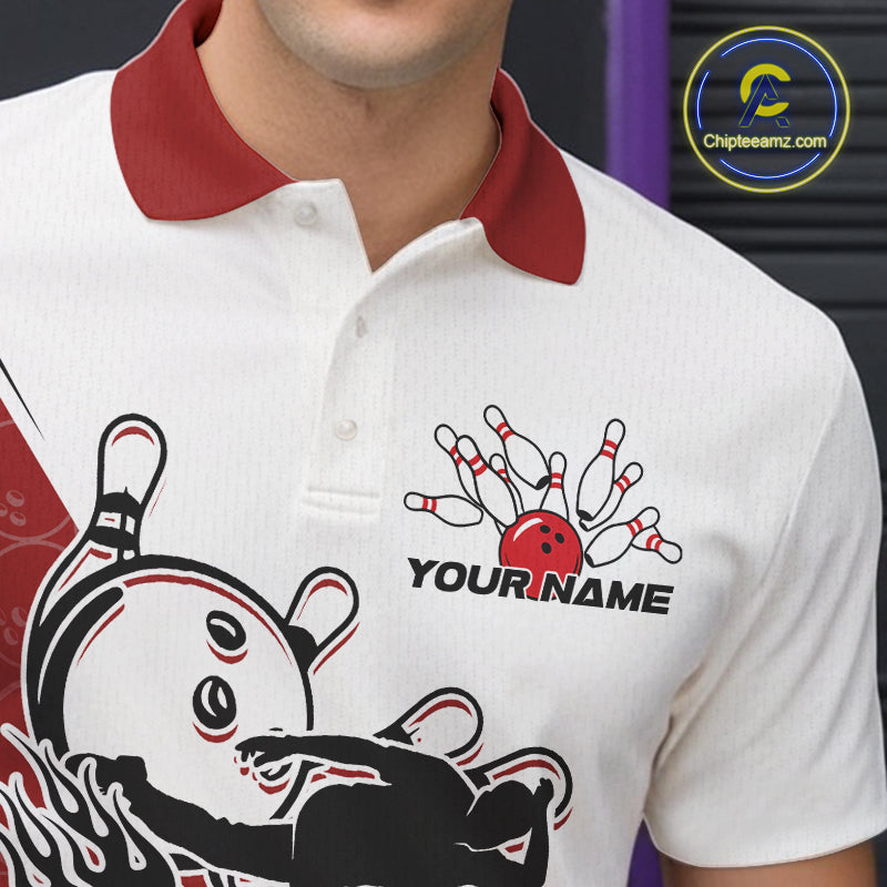 Cusom Red Strike Bowling Team Polo Shirts For Men, Bowling League Shirt Bowlers Outfit IPHW9259