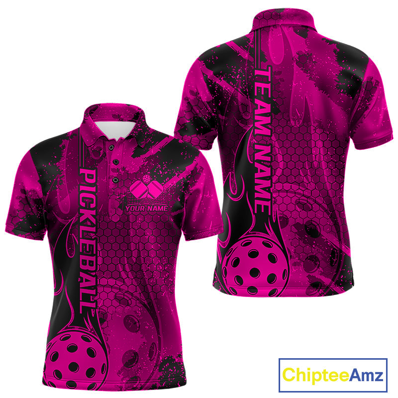 Black And Pink Flame Custom Pickleball Polo Shirts For Men, Team Pickleball Jerseys IPHW9301