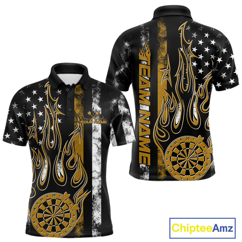 Custom Yellow Thin Line US Flag Patriotic Flame Dartboard Dart Men Polo Shirts, Dart Jersey IPHW9643