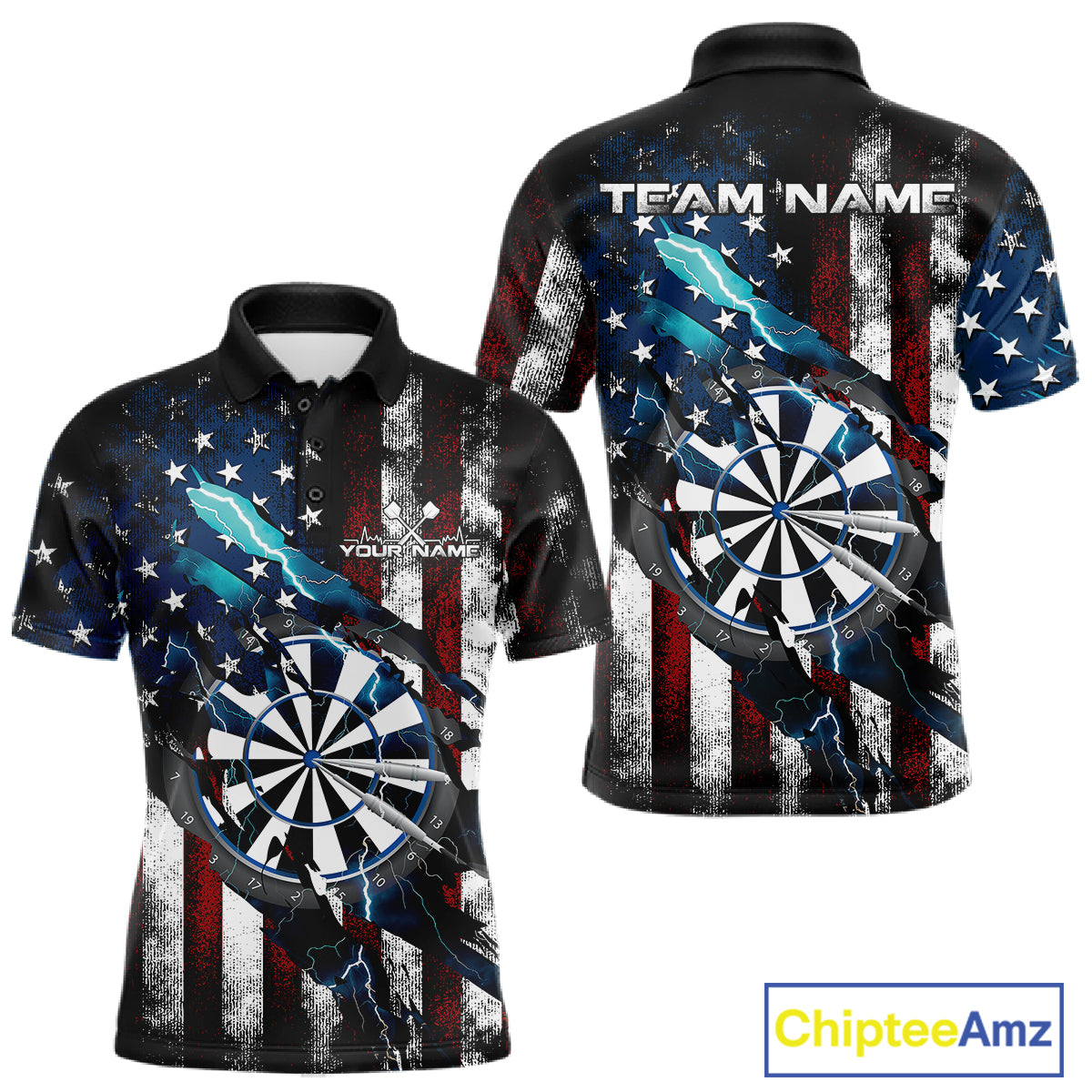 Custom Blue Thunder Lightning Patriotic Dart Men Polo Shirts, Vintage Dart Jerseys IPHW9651