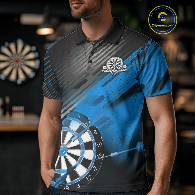 Custom Grunge Blue Dartboard Dart Team Polo Shirts For Men, Dart Players Jerseys IPHW9975