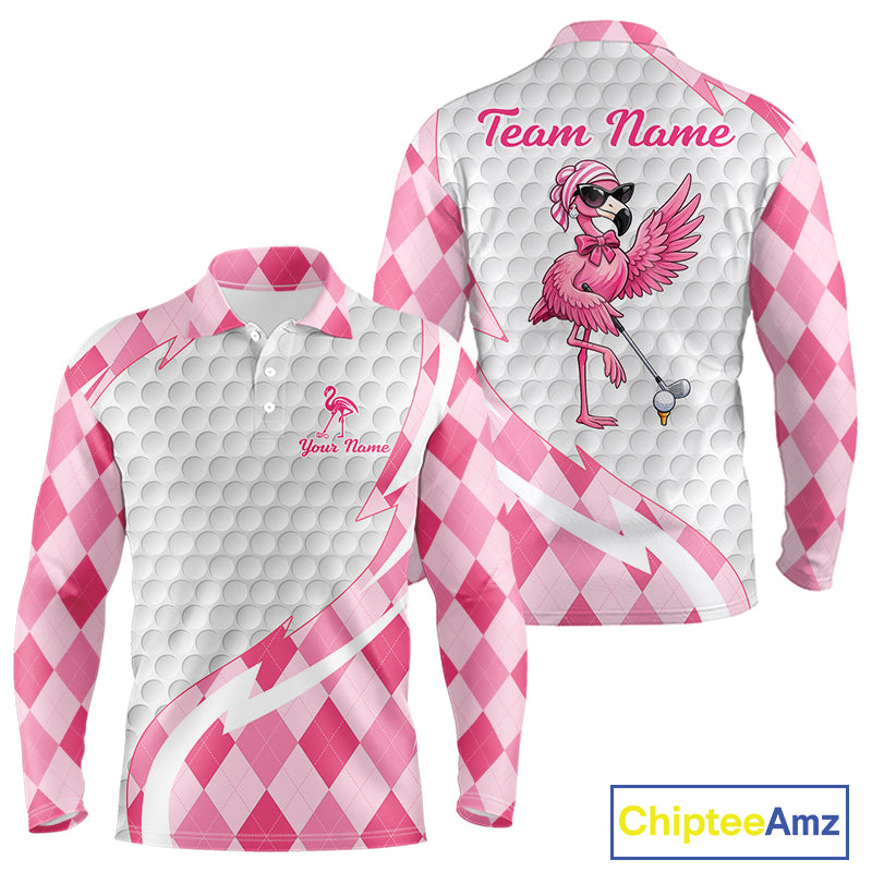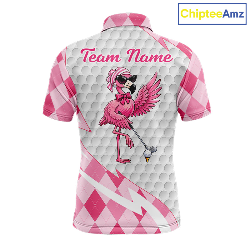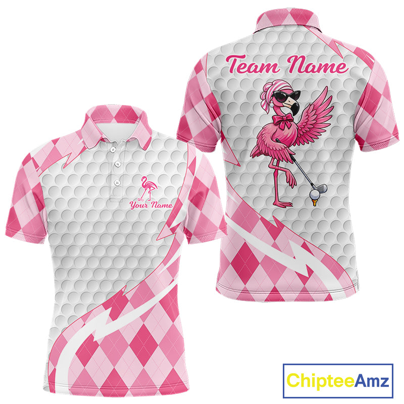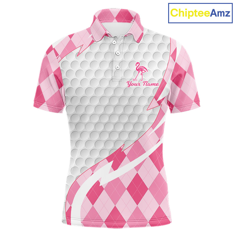 Pink Argyle Plaid Pattern Funny Flamingo Golf Wine Mens Golf Polos Shirt Custom Funny Golf Shirt For Ladies NHT738