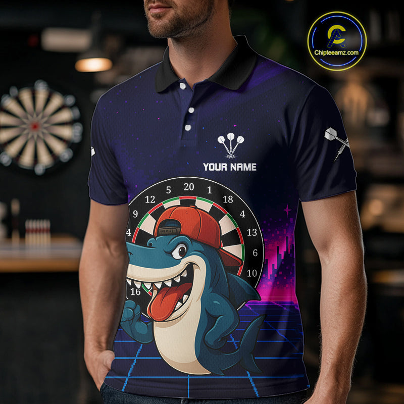 Neon Shark & Dartboard Custom Funny Polo Shirt For Men - Darts Team Jersey NYN0709