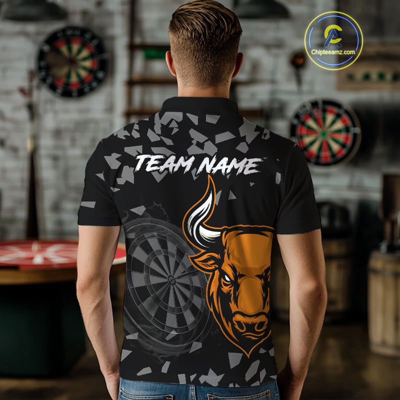 Bull & Dartboard Custom Grunge Men's Darts Polo Shirt - Orange Darts Team Jersey NYN0717