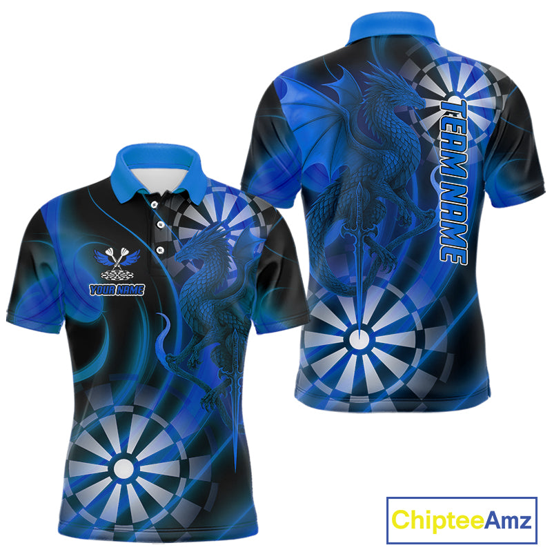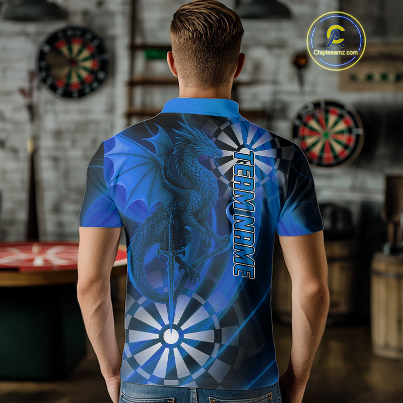 Azure Dragon & Dartboard Custom Darts Polo Shirt For Men - Darts Team Jersey NYN0723