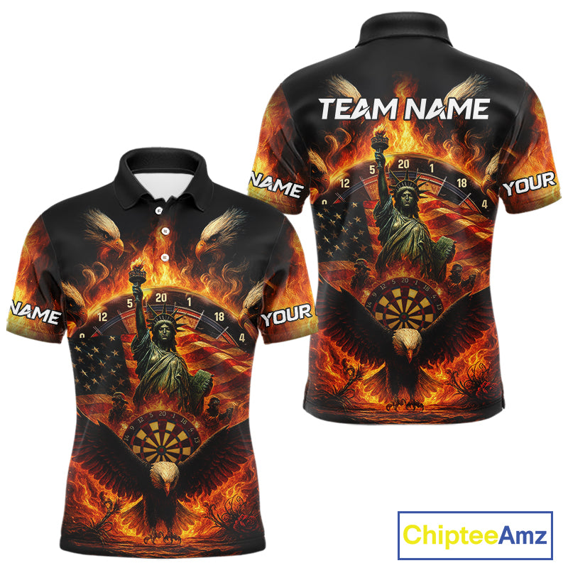 Custom Men's Darts Polo Jersey US Flag Flaming Eagle Dartboard For Darts Team NYN0770