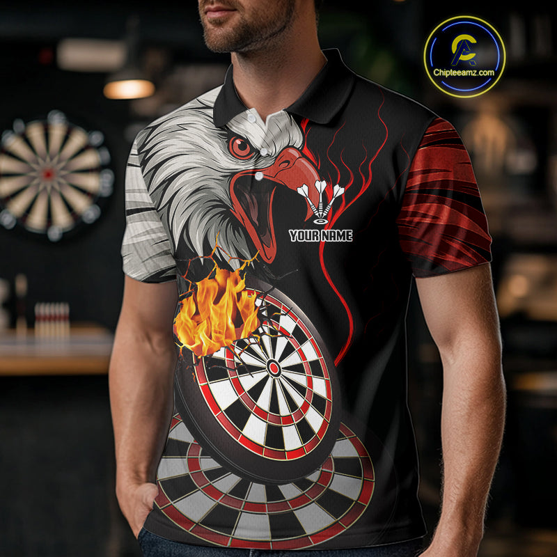 Eagle & Red Crack Darts Custom Funny Dart Polo Shirts For Men, Dart Team Jerseys NYN0798