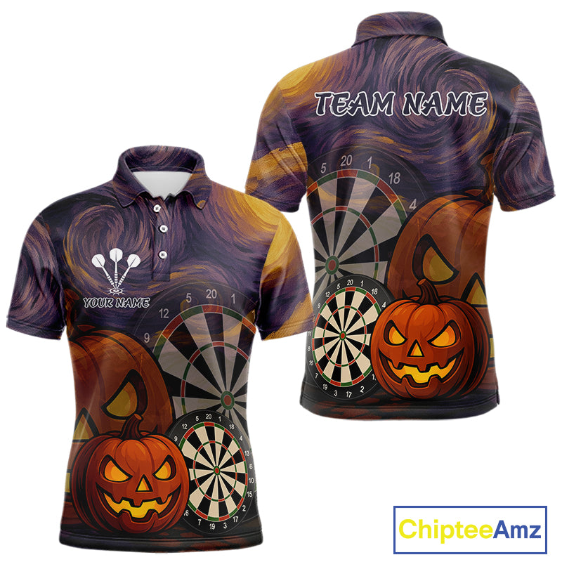 Pumpkin Dartboard 3D Custom Halloween Funny Darts Polo Jerseys For Men, Darts Shirt NYN0831
