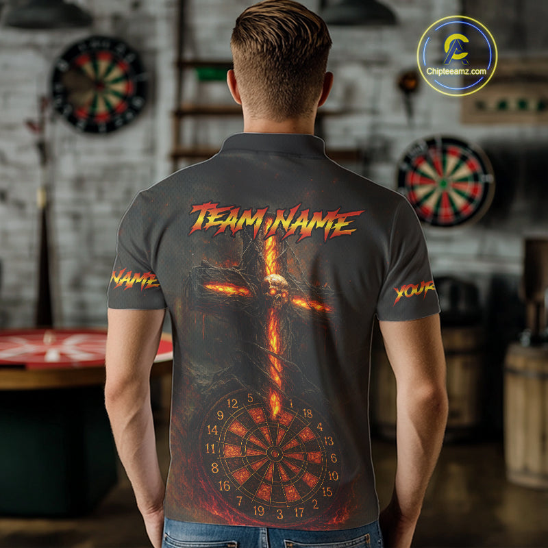 Custom Flames Skull Dartboard Halloween Polo Dart Shirt For Men Outfits Dart Team Jersey NYN0871