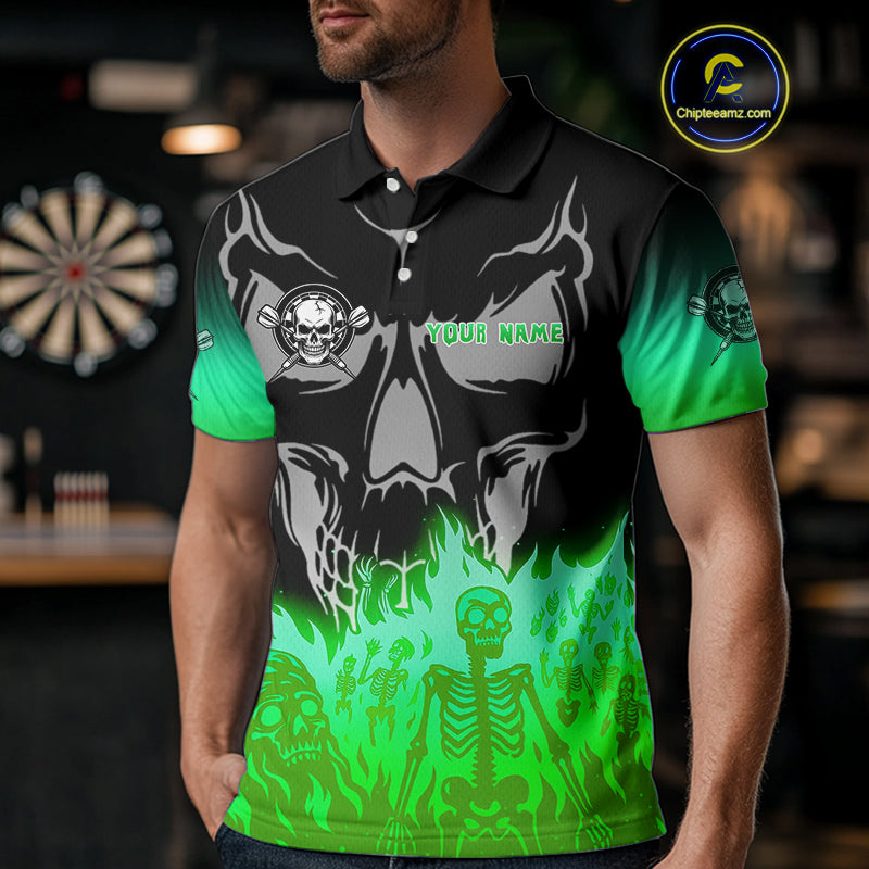 Green Flaming Skull Dartboard Polo Dart Shirt For Men Custom Outfits Darts Team Jersey NYN0997