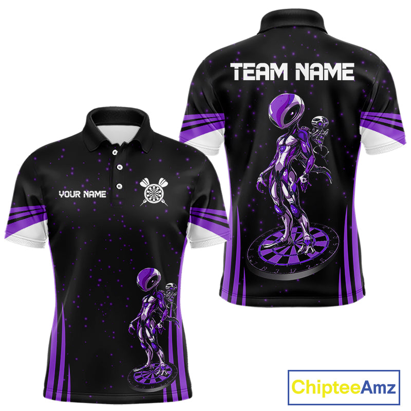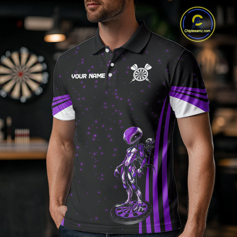 Custom Purple Alien Dartboards Dart Polo Shirts For Men Outfits Alien Dart Team Jerseys NYN1023