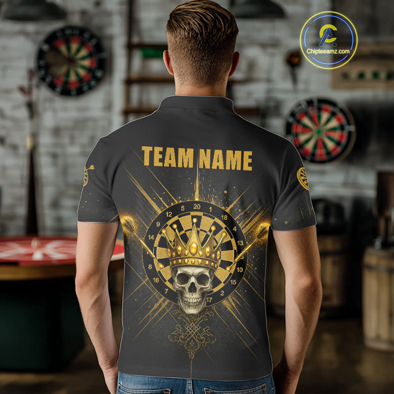 Black And Gold Crown Dartboard Skull Custom Men's Darts Polo Shirt Dart Jerseys NYN1900