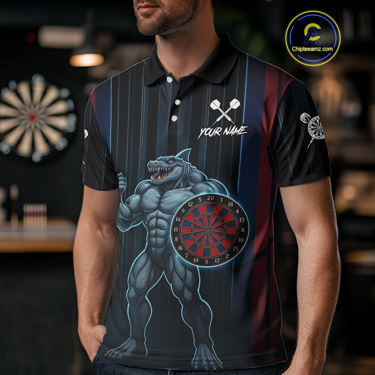 Funny Blue & Red Shark Dartboard Custom Men Darts Polo Shirt Dart Tournament Jerseys NYN1905