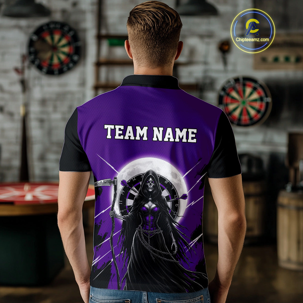Black And Purple Grim Reaper Moon Dartboard Custom Men Darts Polo Shirt Gothic Dart Jerseys NYN1949