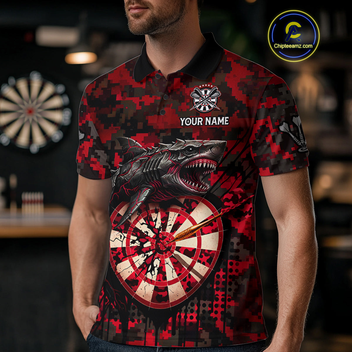 Custom Red Digital Camo Dartboard Horror Shark Darts Polo Shirt For Men Dart Gifts NYN1965