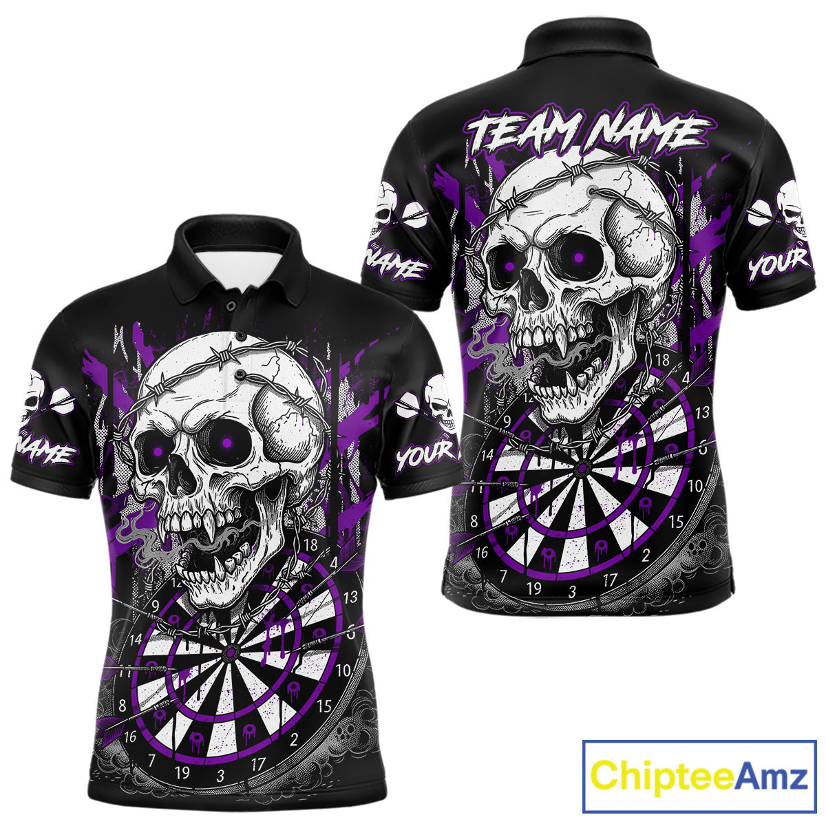 Custom Purple Grey Skull Barbed Wire Dartboard Grunge Darts Polo Shirt For Men Dart Gifts NYN1969