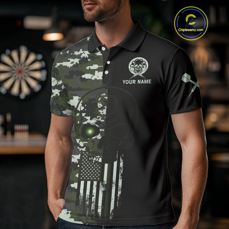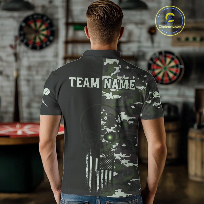 Black Green Military US Flag Digital Camo Skull Custom Men Darts Polo Shirt Dart Gifts NYN1986