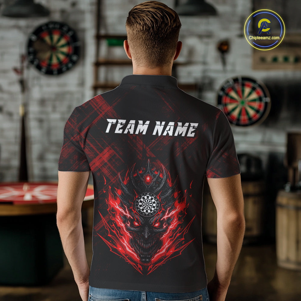 Red Skull Lightning Thunder Grunge Dartboard Custom Men Polo Darts Shirt Dart Gifts NYN2013