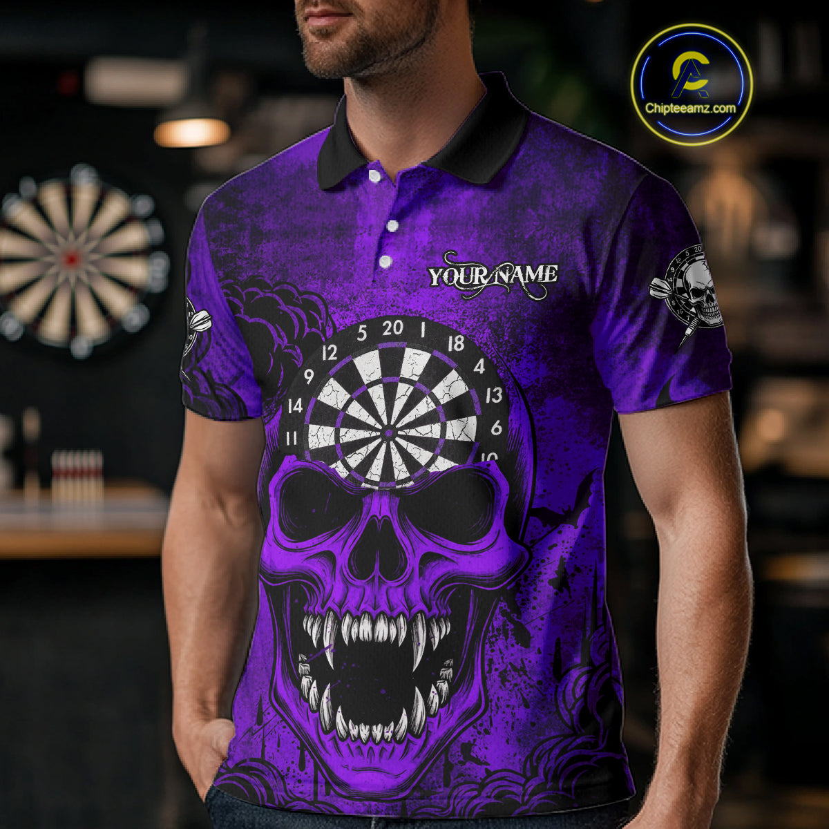 Purple Grunge Horror Dartboard Skull Custom Men Polo Dart Jerseys Grunge Dart Gifts NYN2032