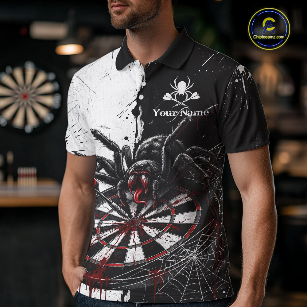 Personalized Black & Red Dripping Spider Men Dart Polo Shirts Custom Dart League Jerseys NYN2095