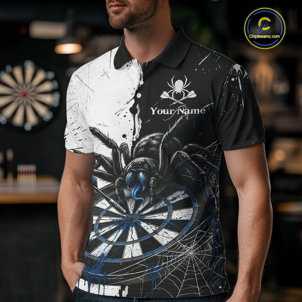 Personalized Black & Blue Dripping Spider Men Dart Polo Shirts Custom Dart League Jerseys NYN2097