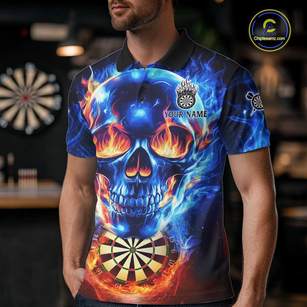 Red And Blue Flames Skull Dartboard Custom Men Darts Polo League Shirts Skull Dart Jerseys NYN2250