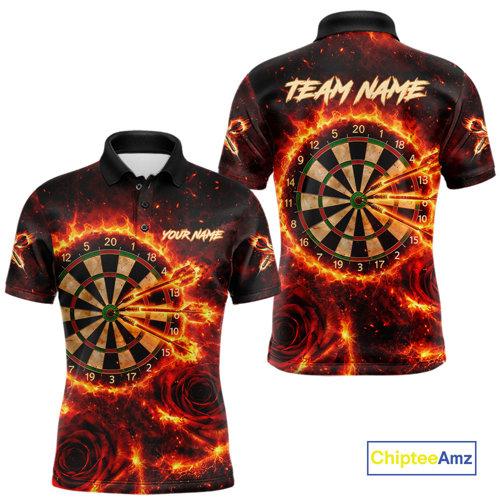 Red Flaming Roses Dartboard & Arrow Custom Men Darts Polo Shirts Fire Flame Dart Jerseys NYN2264