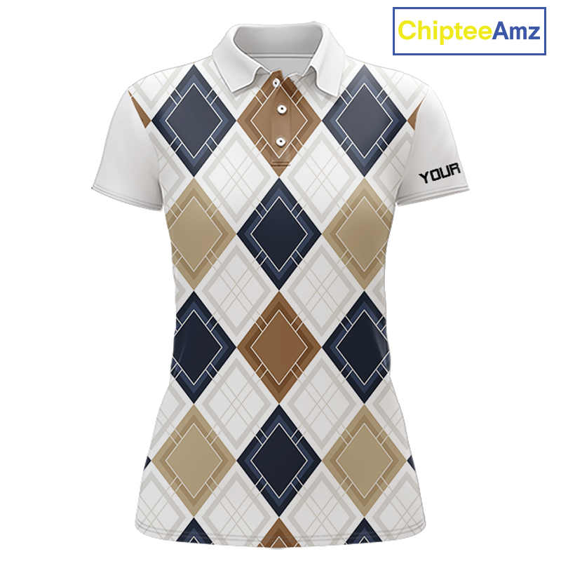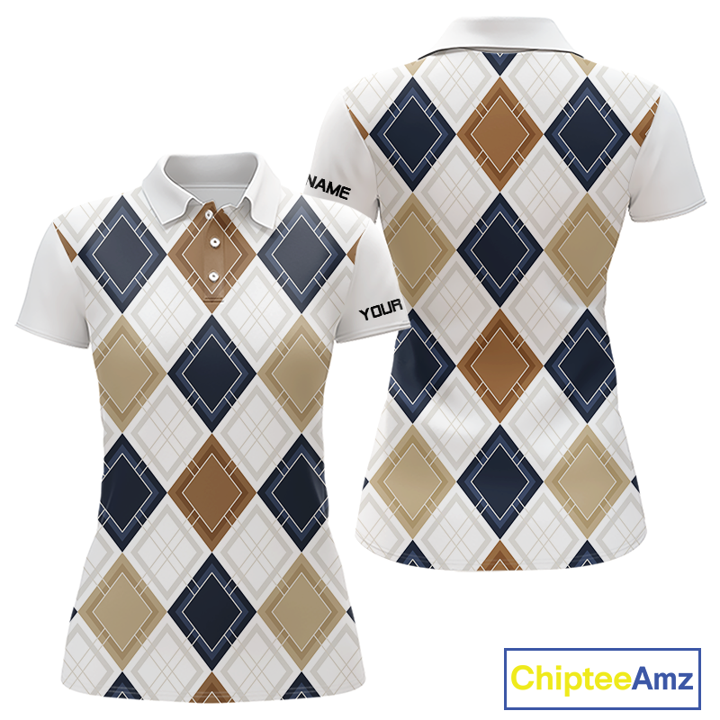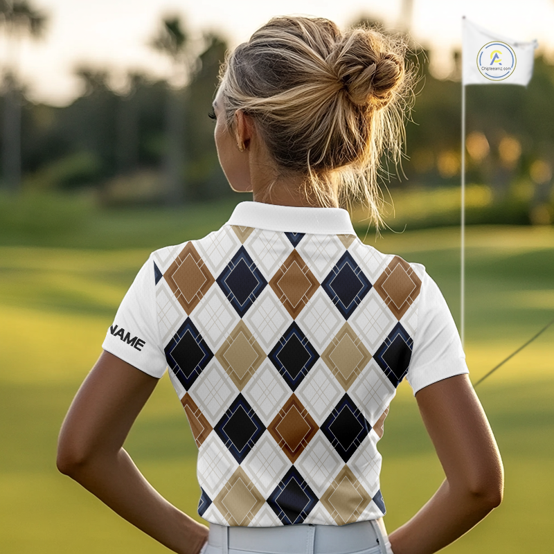 Plaid Womens Golf Polo Shirt Custom Retro Argyle Pattern Team Ladies Golf Tops, Vintage Golf Gift NHN0216