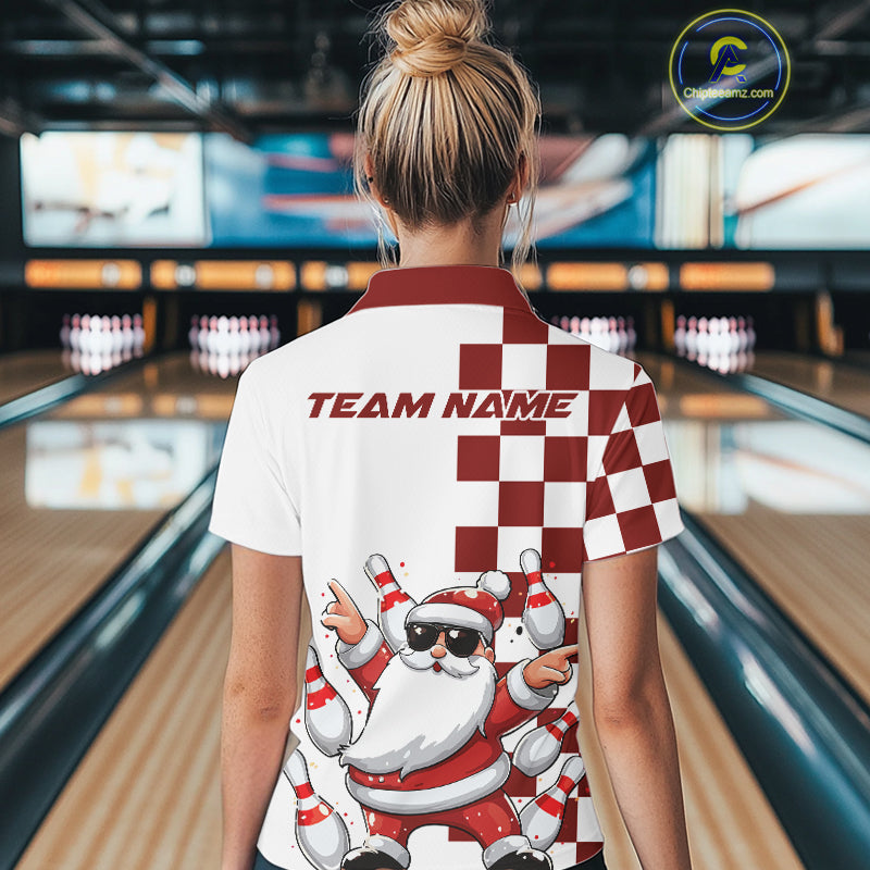 Custom Funny Santa Claus Christmas Bowling Women Polo Shirts, Xmas Bowling Team Shirt IPHW10110