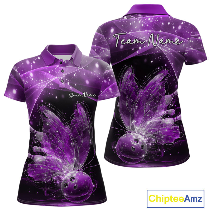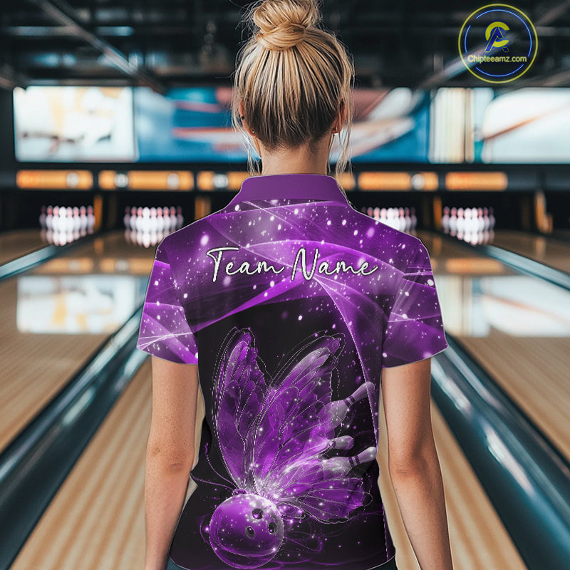 Custom Ethereal Purple Butterfly Bowling Team Women Polo Shirts, Ladies Bowling Outfit IPHW10245