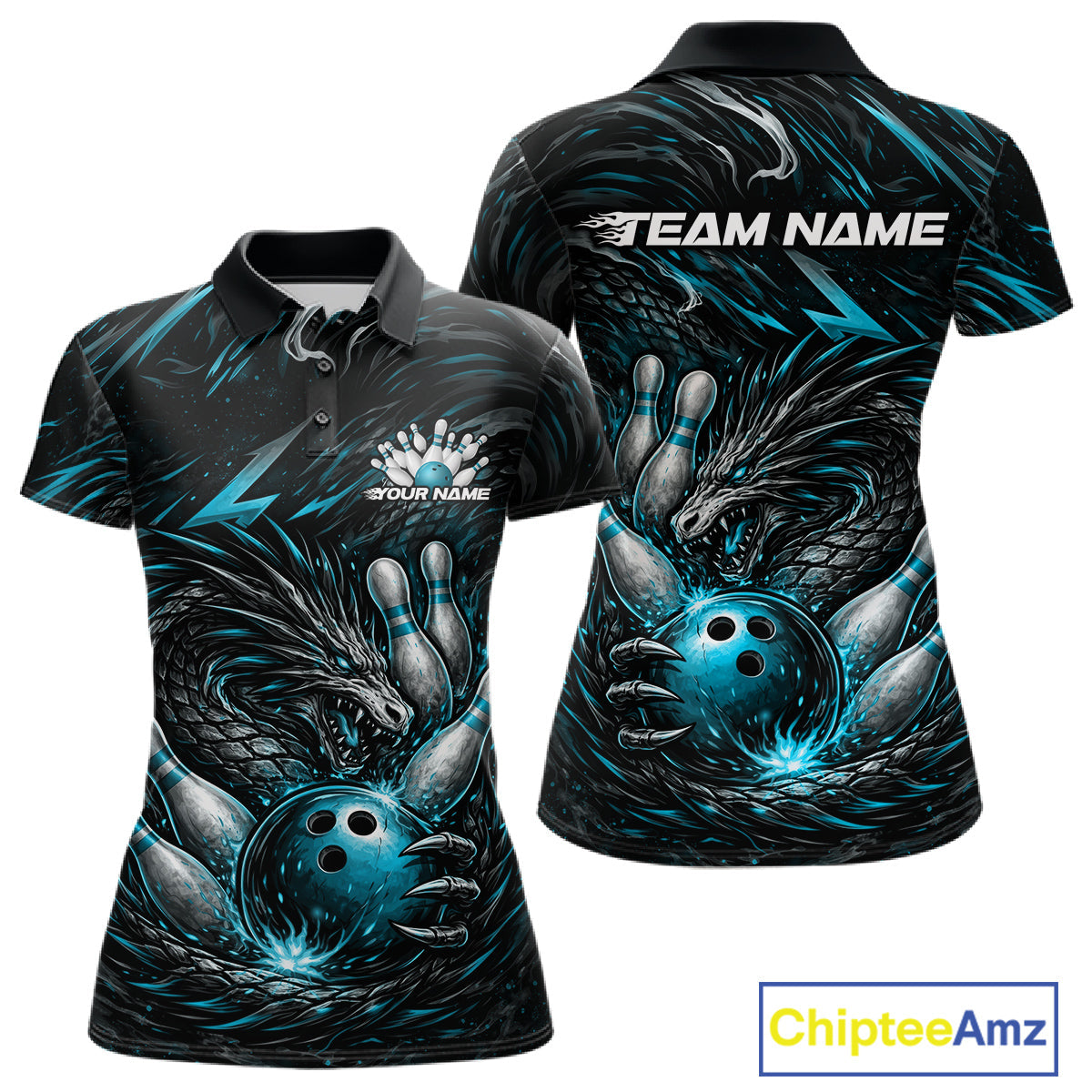 Custom Turquoise Blue Dragon Bowling Jerseys, Dragon Bowling Team Women Polo Shirt IPHW10363