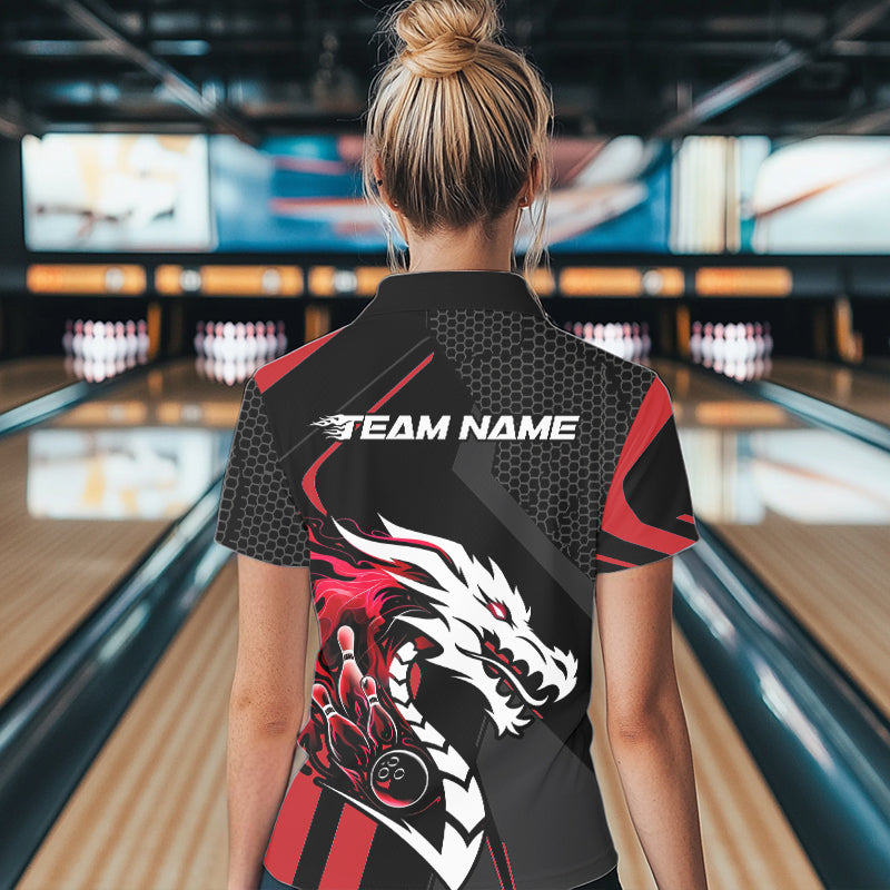 Custom Black And Red Dragon Bowling Jerseys, Bowling Team Women Polo Shirts Bowlers Outfit IPHW8701