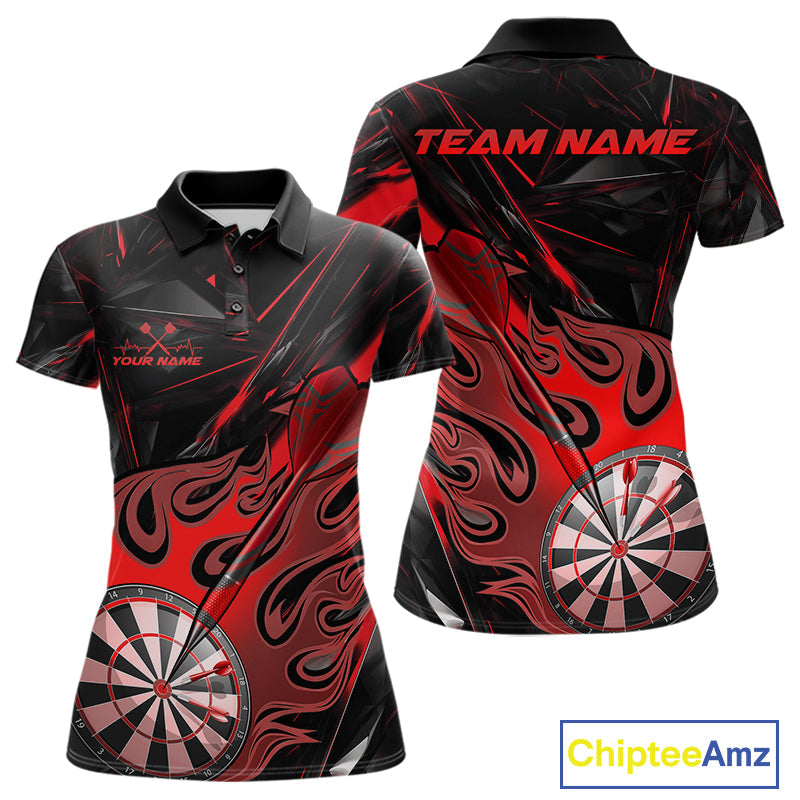 Custom Black And Red Flame Dartboard Dart Polo Shirts For Women, Dart Players Outfits IPHW9688