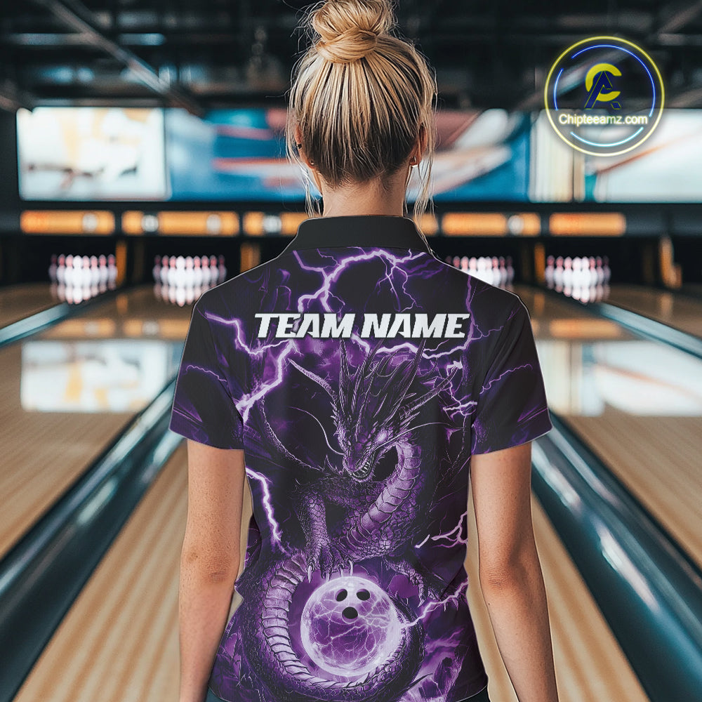 Custom Purple Thunder Lightning Dragon Bowling Polo Shirts For Women, Team Uniform IPHW9758
