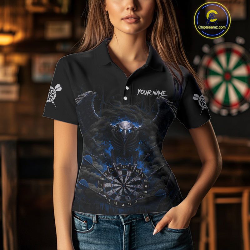 Black Smokes Eagle Chain Blue Grunge Dartboard Custom Women Darts Polo Shirt Dart Jerseys NYN1909